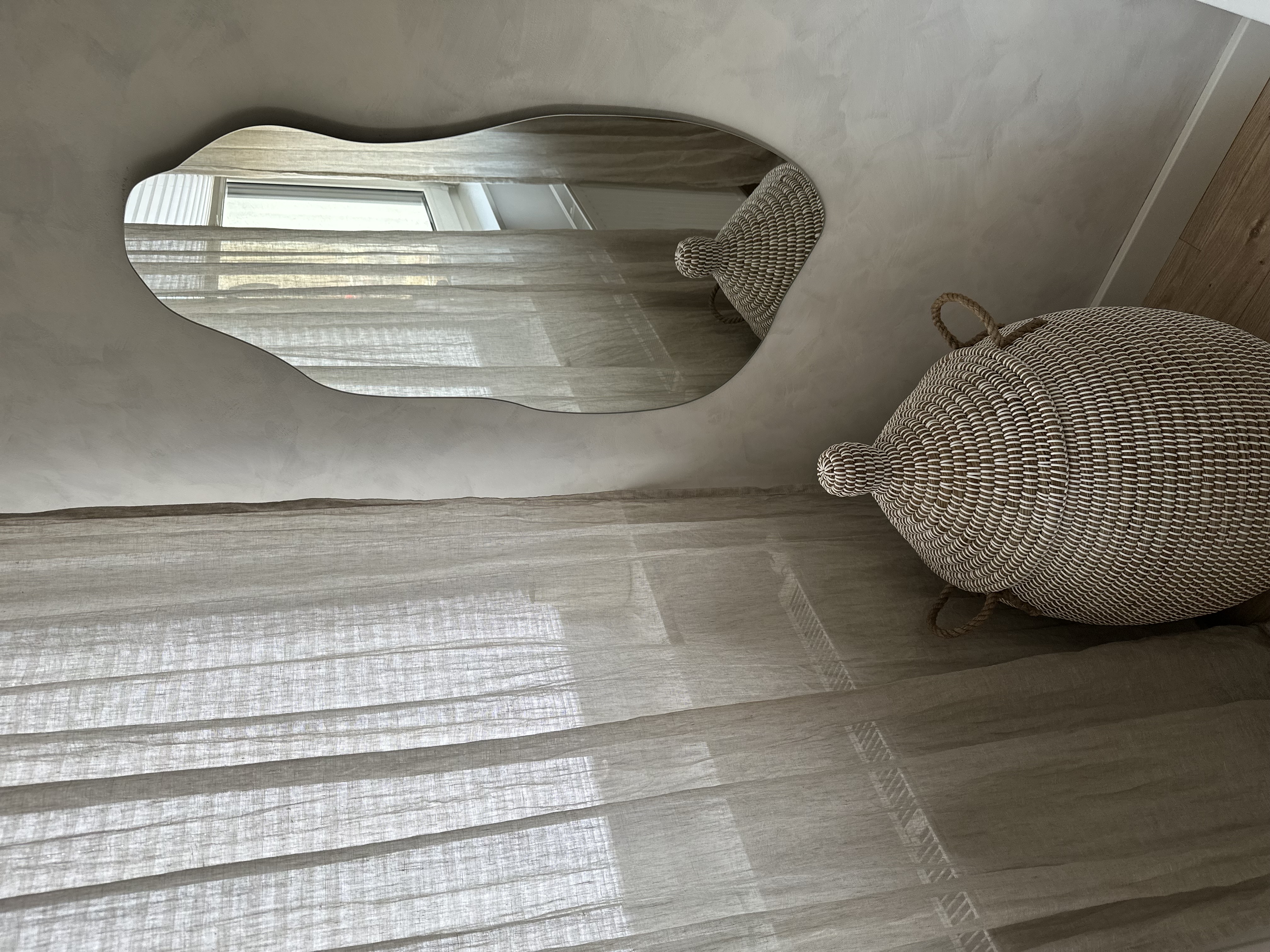 Suchen Sie eine originelle Dekoration, die Ihr Interieur belebt? Wählen Sie einen Spiegel mit einer einzigartigen, organischen Form in der Größe 50x100, der sich durch eine asymmetrische Kontur auszeichnet, die dem Innenraum einen modernen Charakter und Designercharme verleiht. Solch ein einzigartiges Dekorationselement ist der Mittelpunkt jedes Arrangements, zieht die Aufmerksamkeit auf sich und beeindruckt durch seine originelle Form. Der 50x100 große Spiegel unförmig Originalaufhängung passt perfekt in den Raum eines Schlafzimmers, Wohnzimmers, Badezimmers oder Flurs und sorgt immer für ein unvergessliches ästhetisches Erlebnis.