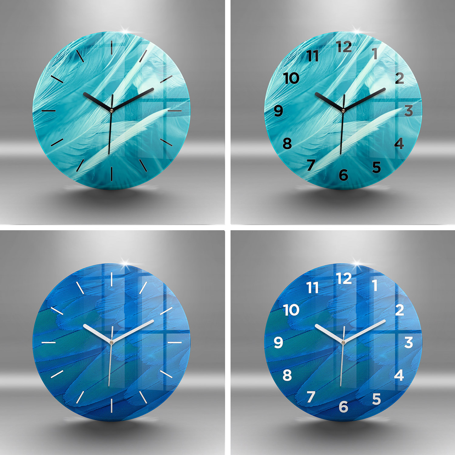 Denke daran, dass du eine Glasuhr mit Aufdruck kaufst. Motive wie z. B. Glitzer, Gold, Silber, Beton, Marmor, rostiges Blech usw. sind gedruckt, wodurch sie sich optisch von ihren echten Gegenstücken unterscheiden können.